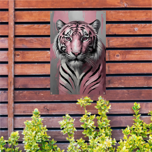 Abstract Roze en Zilver Tijger Schilderij tuinposter