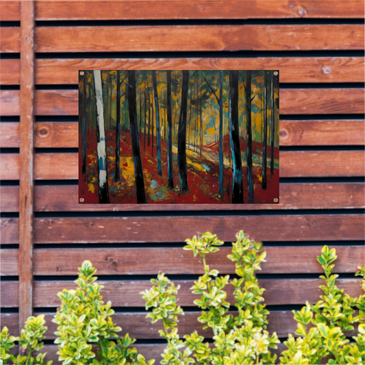 Herfstpracht in Abstracte Bosimpressie tuinposter