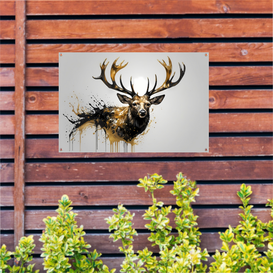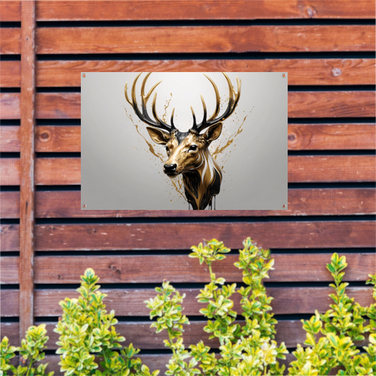 Gouden Hertenhoofd met Dynamische Spatten tuinposter