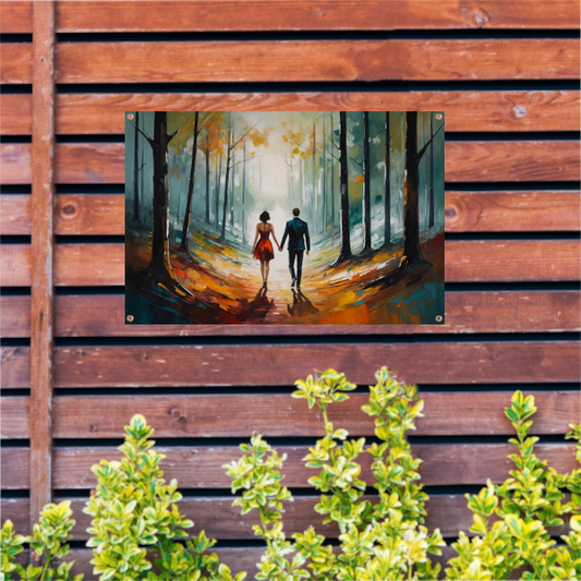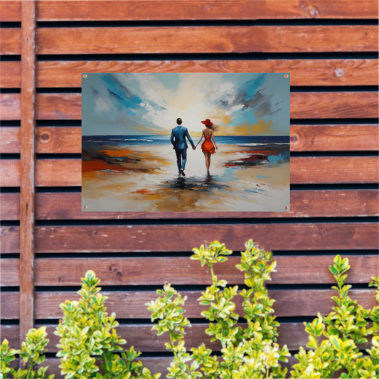 Romantische Strandwandeling met Kleurrijk Paar tuinposter