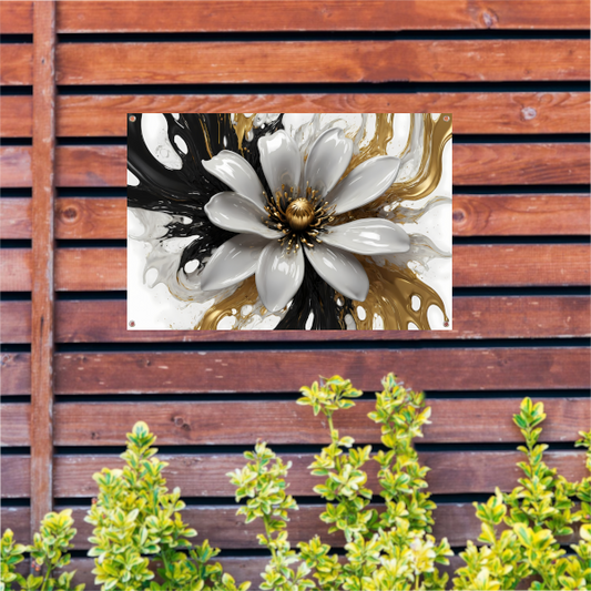 Golvend Goud en Wit Bloemenontwerp tuinposter