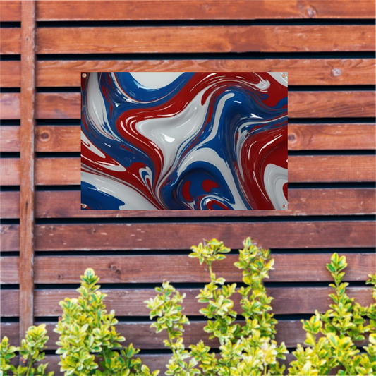 Dynamische Rood-Wit-Blauwe Abstracte Vormen tuinposter