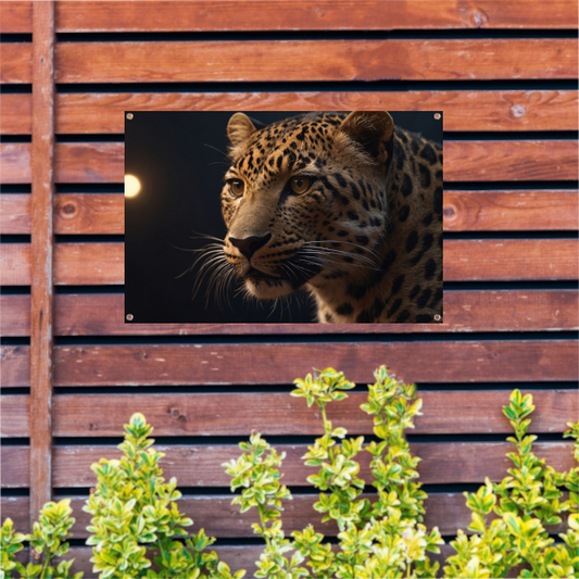 Gouden schemerlicht over luipaardportret tuinposter