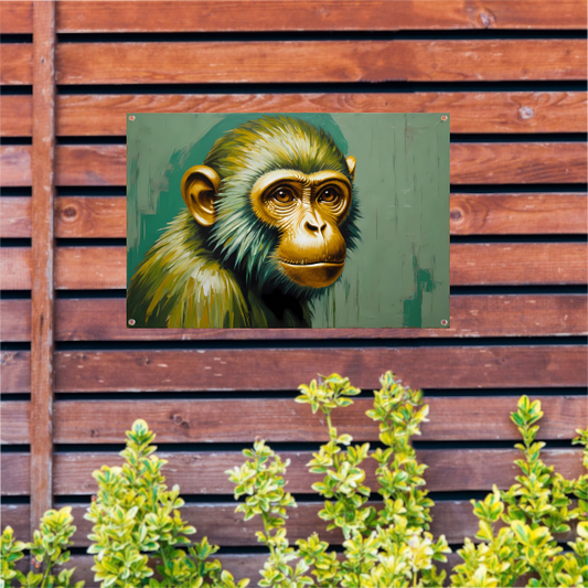 Expressieve Digitale Aap met Gouden Glans tuinposter