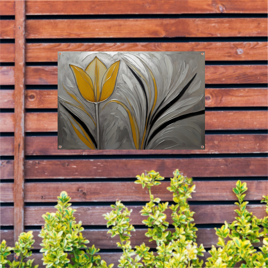 Abstracte Gele Tulp op Zilveren Achtergrond tuinposter