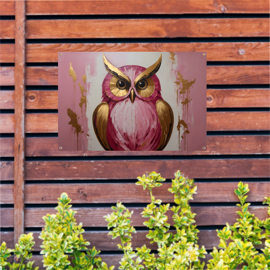 Abstracte gouden en roze uil schilderij tuinposter