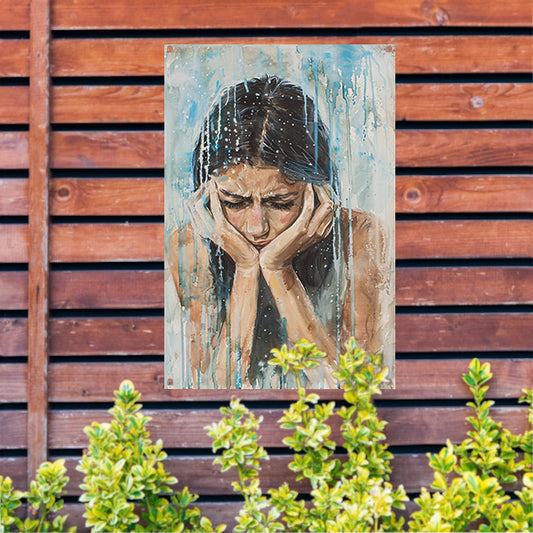 Emotionele vrouw geschilderd in aquarel tuinposter