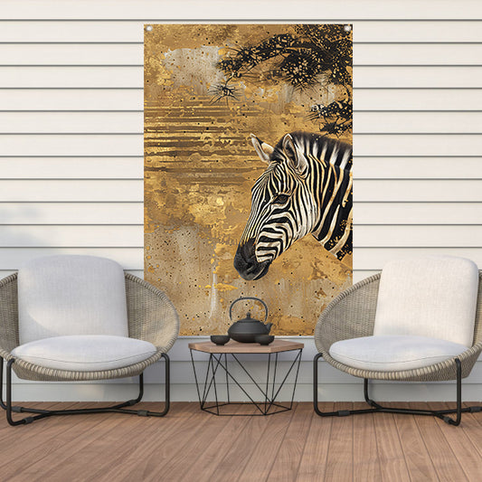 Abstract schilderij van zebra met gouden tinten tuinposter