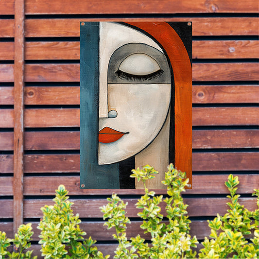 Kubistisch schilderij van vrouw met gesloten ogen tuinposter