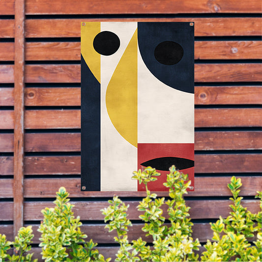 Abstract geometrisch gezicht met sterke contrasten tuinposter