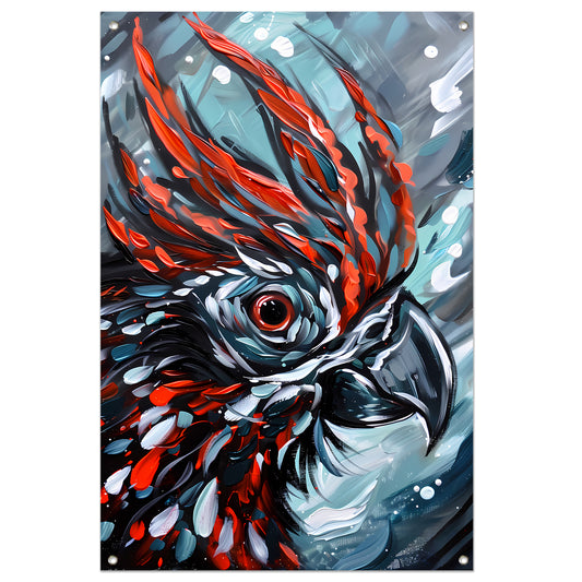 Abstract schilderij van kleurrijke papegaai tuinposter