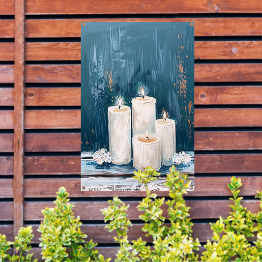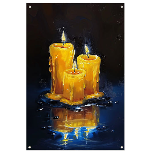 Prachtig realistisch schilderij van brandende kaarsen tuinposter