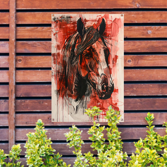 Kleurrijk schilderij van een paard in moderne stijl tuinposter