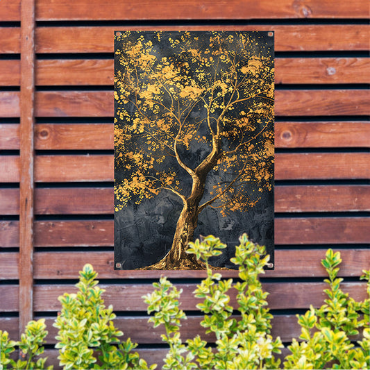 Boom met gouden bladeren in abstracte stijl tuinposter