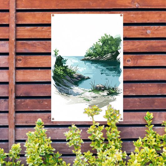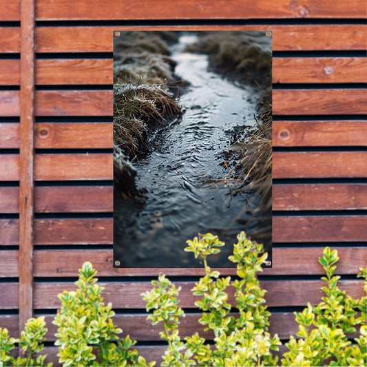 Regendruppels op Dennennaalden in Zachte Focus tuinposter