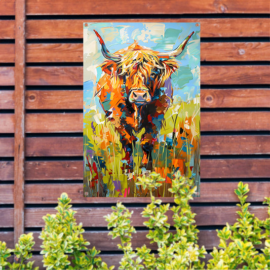 Kleurrijke Schotse hooglander in expressief schilderij tuinposter