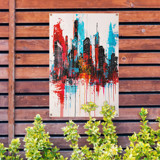 Abstract schilderij van stadsgezicht met kleuren tuinposter