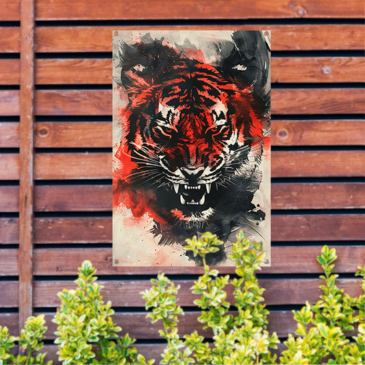 Dynamische abstracte tijger schilderij met felle kleuren tuinposter