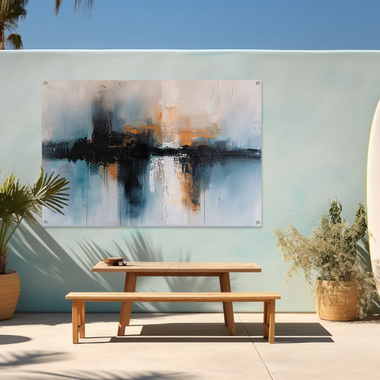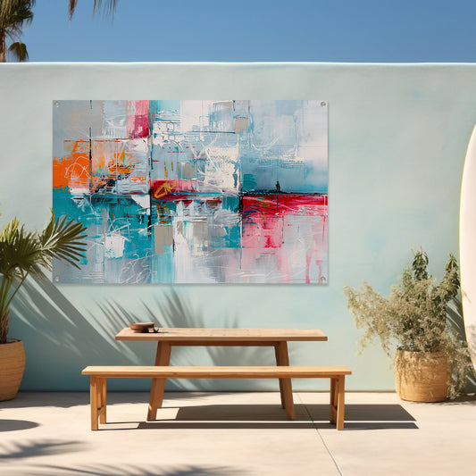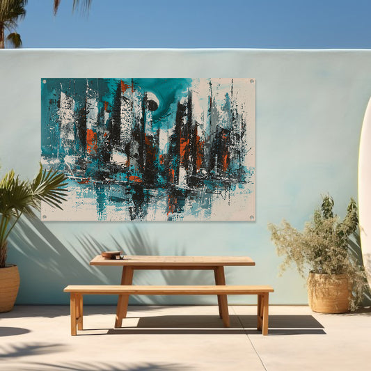 Abstracte stadsgezicht schilderij met dynamische kleuren tuinposter