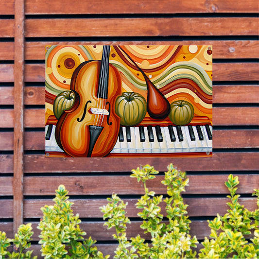 Abstracte Saxofoon op Muziekpapier tuinposter