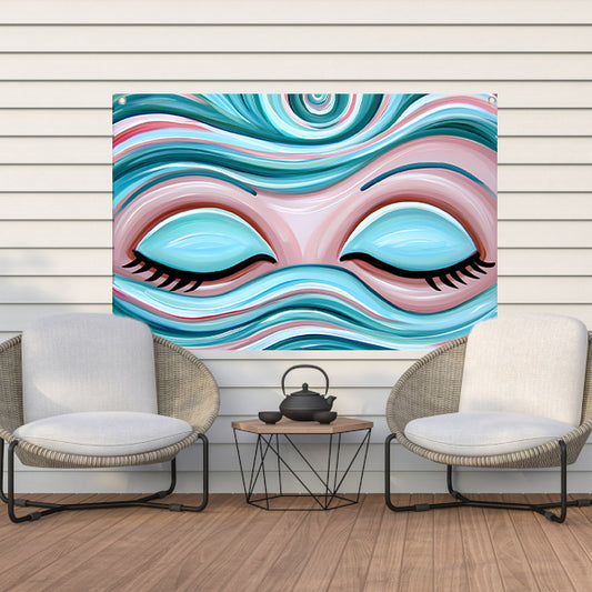 Abstracte kunst van gesloten ogen met golven tuinposter