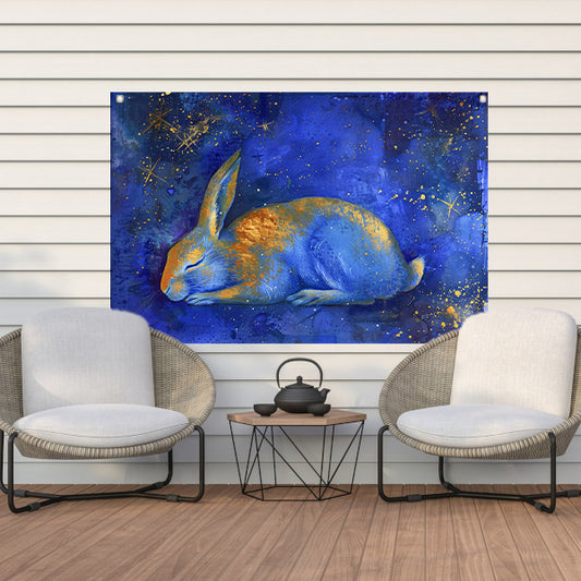 Dromerig konijn onder sterrenhemel schilderij tuinposter
