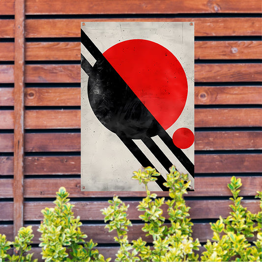 Abstract schilderij met rode cirkel en zwarte lijnen. tuinposter