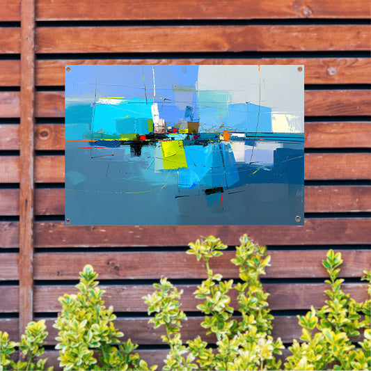 Abstract stadsgezicht in dynamische kleuren tuinposter