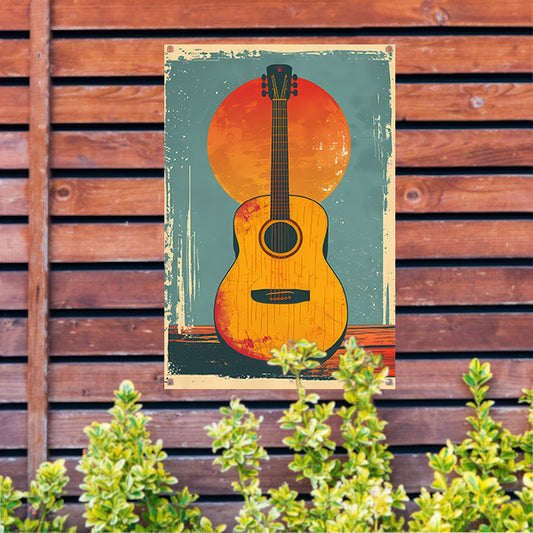 Vintage Gitaar in Ondergaande Zon tuinposter