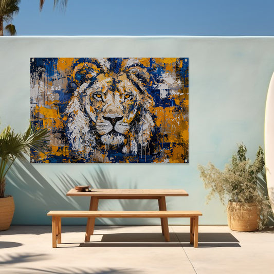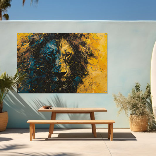 Dynamisch abstract schilderij van een leeuw tuinposter