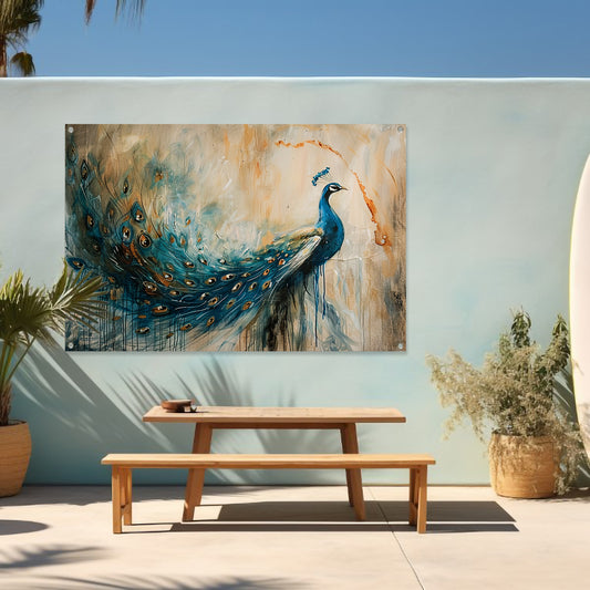 Abstracte surrealistische schilderij van een pauw tuinposter