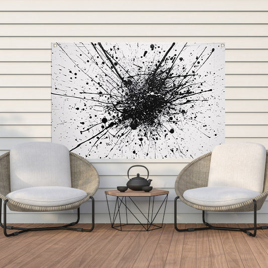 Abstracte kunst met zwarte en witte verfspatten tuinposter