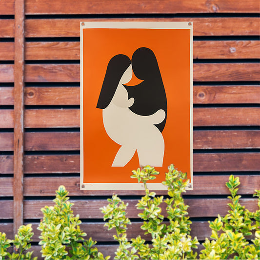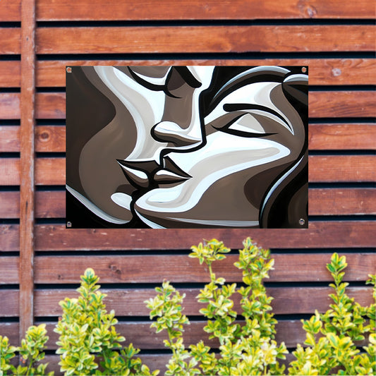 Modern abstract kunstwerk van kussende gezichten tuinposter