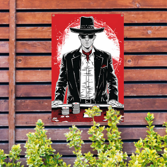 Stoere cowboy met pokerchips in zwart-wit tuinposter