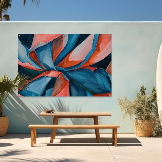 Abstract kleurrijk kunstwerk met levendige patronen tuinposter