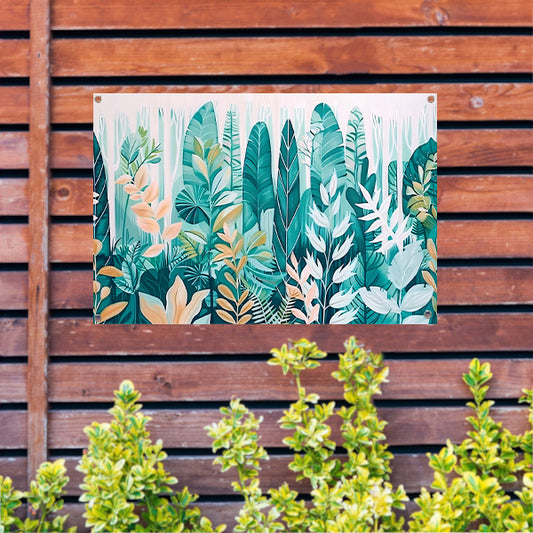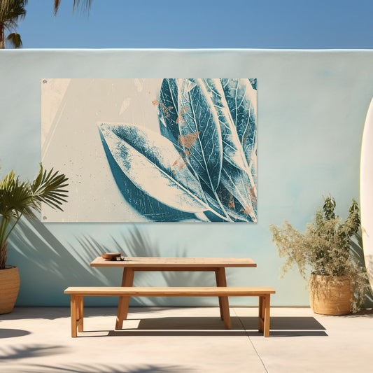 Abstracte blauwe bladeren aquarel kunstwerk tuinposter