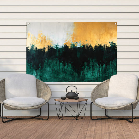 Abstract schilderij met dynamische kleurrijke accenten tuinposter
