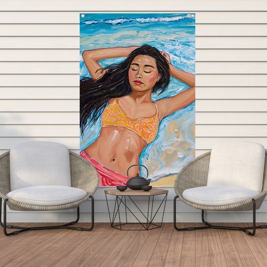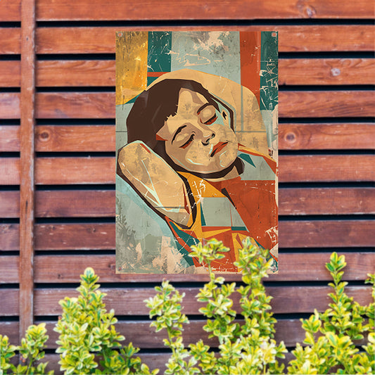 Kleurrijk slapend kind in abstracte stijl tuinposter