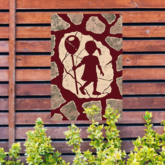 Meisje met ballon en gescheurde achtergrond tuinposter