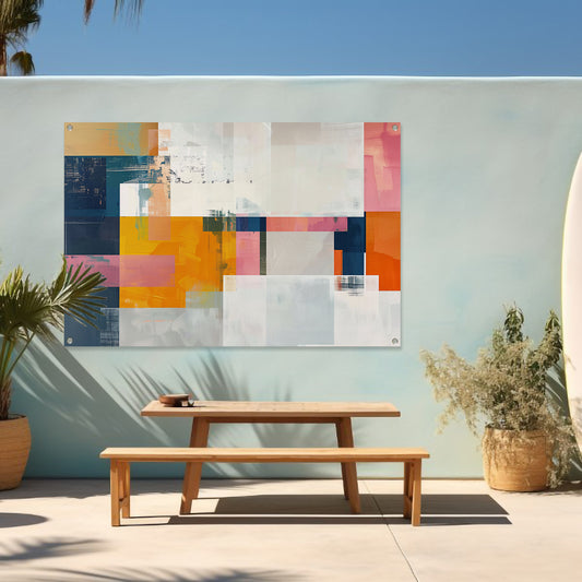 Kleurrijke abstracte geometrische rechthoeken kunstwerk tuinposter