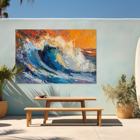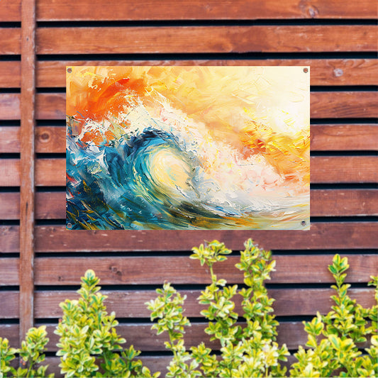 Dynamisch impressionistisch schilderij van een golf tuinposter