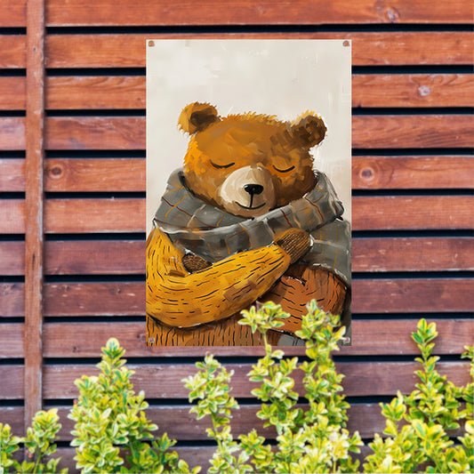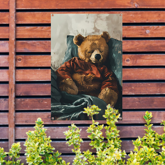 Blauwe beer met strik in impressionistische stijl tuinposter