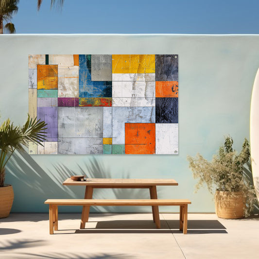 Abstracte kleurrijke rechthoeken met texturen tuinposter