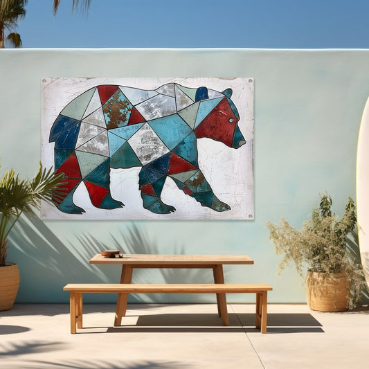 Geometrische beer in kleurrijke moderne kunst tuinposter