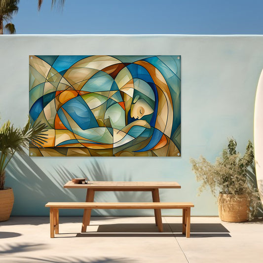 Abstract schilderij met kleurrijke vormen en lijnen tuinposter
