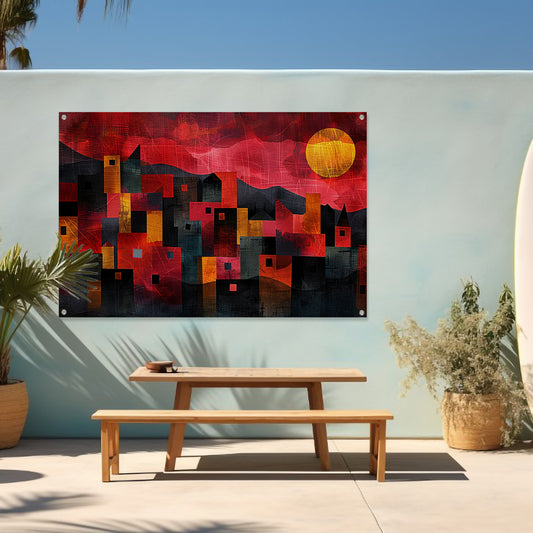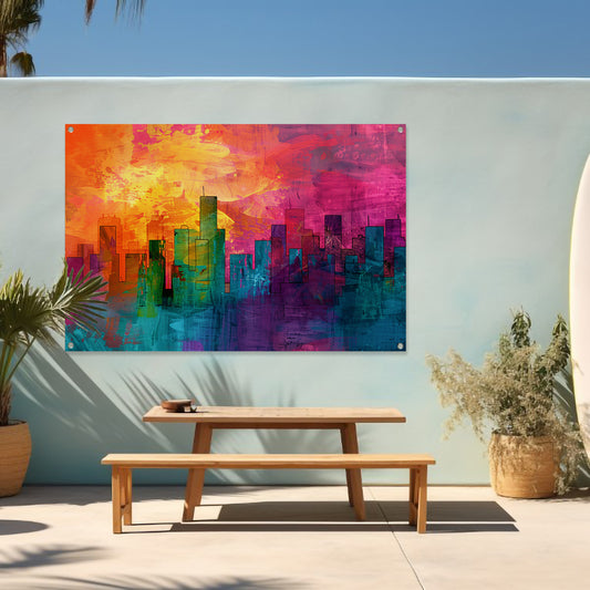 Digitale kunstwerk van kleurrijke skyline tuinposter