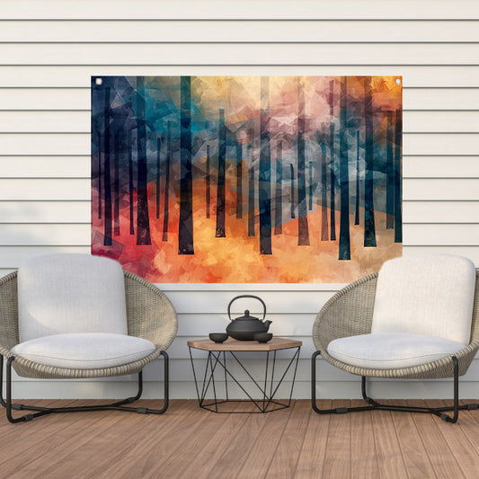 Kleurrijk abstract boslandschap in moderne stijl tuinposter