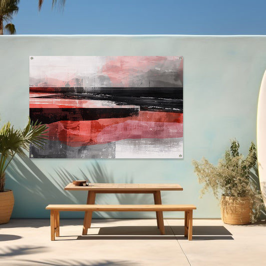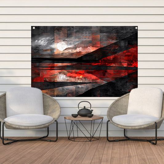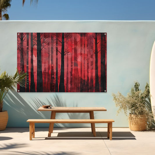 Abstract boslandschap met rode en zwarte kleuren tuinposter