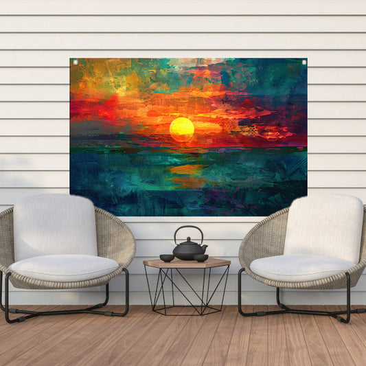 Kleurrijke digitale zonsondergang schilderij tuinposter