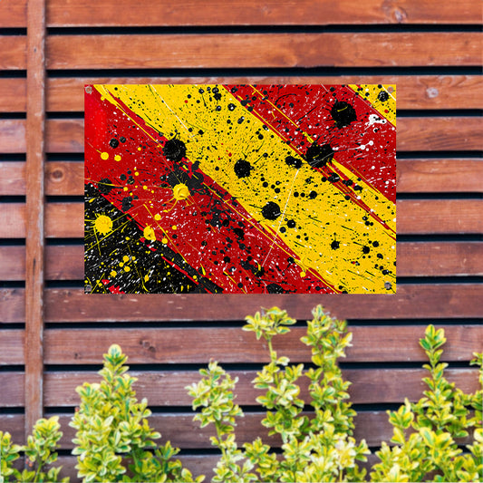 Abstracte dynamische kunst met kleurrijke spetters tuinposter